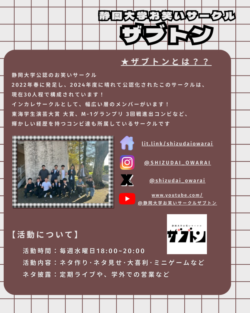 活動内容:ネタ作り・ネタ見せ・大喜利・ミニゲームなど