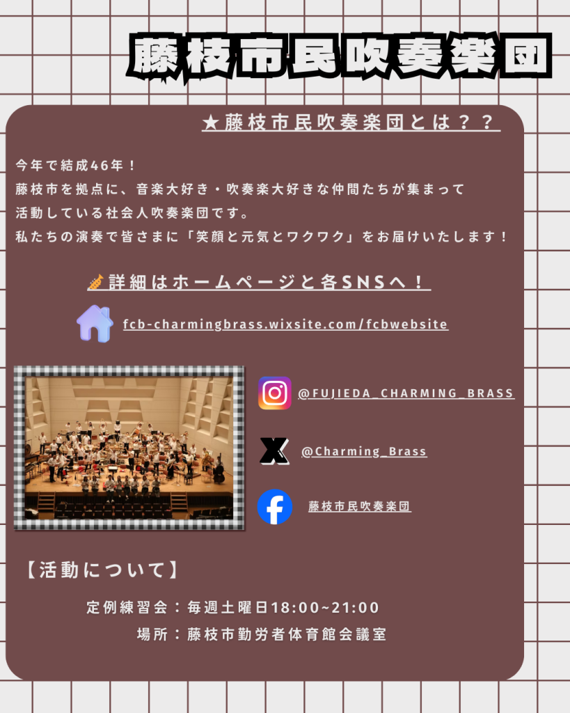 藤枝市民吹奏楽団さんの詳細は各SNSへ