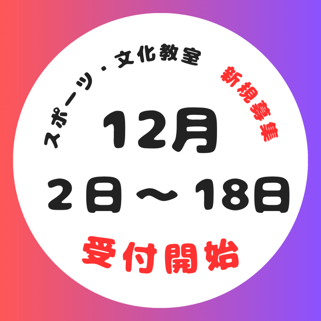 体験会について 【12月中】各教室1日のみ開催 ※体験希望者は事前に申込が必要 → 【11/1(土)~11/21(金)まで】